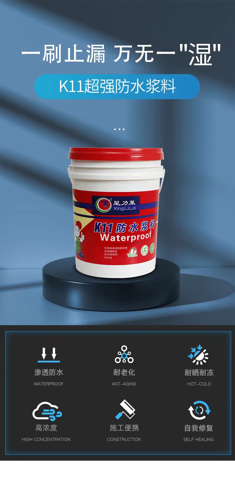 K11防水漿料是一種以抗堿的合成改性水泥基的防水材料,是建筑防水材料,其產(chǎn)品以操作簡(jiǎn)易,性能優(yōu)良而超越同類(lèi)產(chǎn)品。